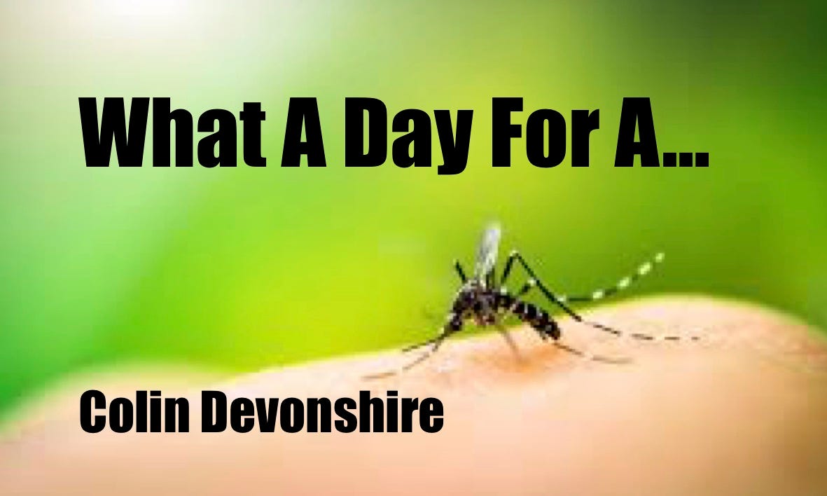 The crossword in his paper was forgotten, his newspaper, was now a weapon. He thrashed and battered, killing scores of his enemy. Mosquito, the answer to the clue he was stuck on, came to him as a needle pricked his ear lobe.